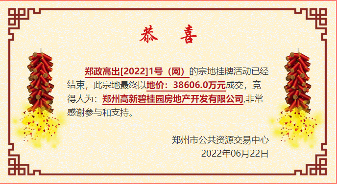 该地块由郑州高新碧桂园房地产开发有限公司以起始价38606万元摘得,地价908万元/亩,折合楼面价3784元/㎡。