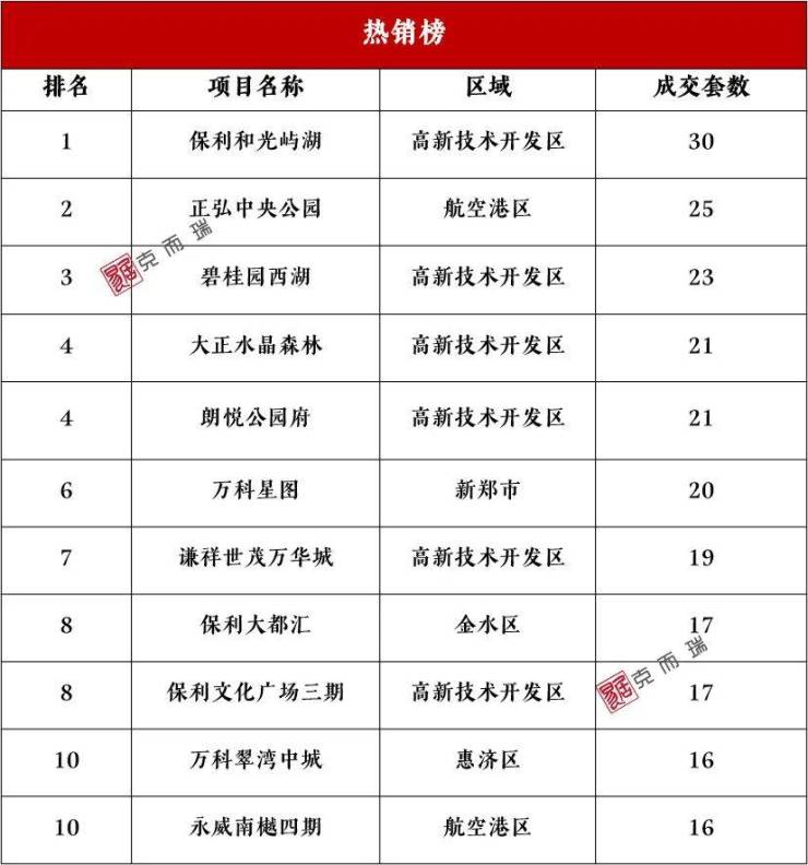 本周热销楼盘榜TOP3为保利和光屿湖、正弘中央公园和碧桂园西湖;(本次榜单均已排除本周开盘项目)