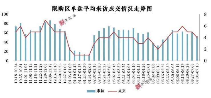 本周限购区监测约300个项目,平均来访约53组,成交约4套;