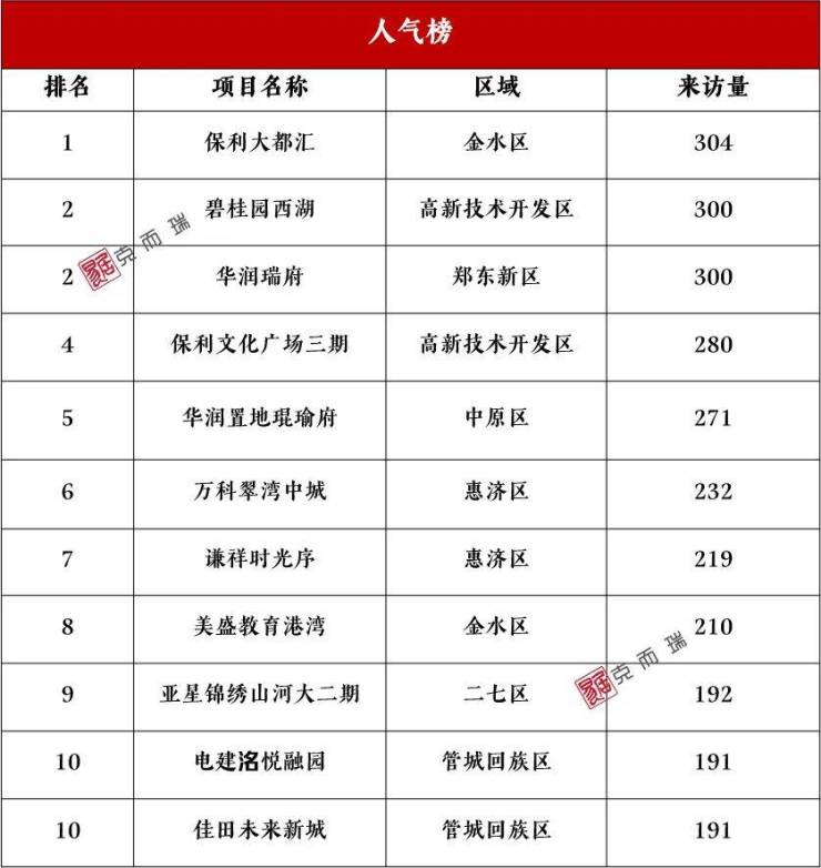 本周人气楼盘榜TOP3分别为保利大都汇、碧桂园西湖和华润瑞府。(本次榜单均已排除本周开盘项目)