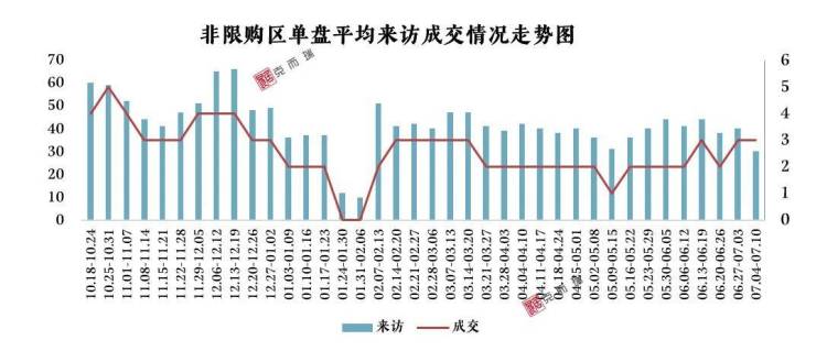 非限购区监测约20个项目,平均来访约30组,成交约3套。