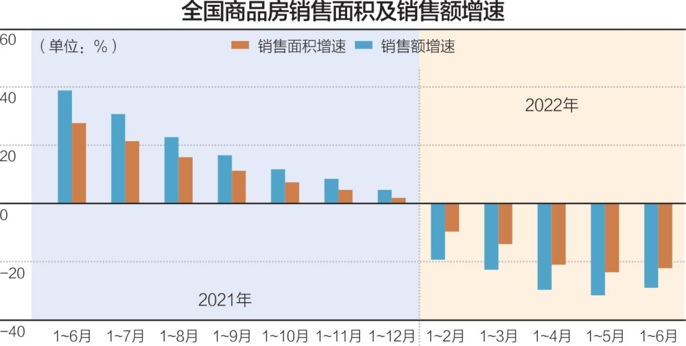 今年前6月商品房销售面积同比下降22.2% 数据来源:国家统计局 杨靖制图