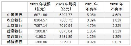 表1:2020及2021年6家国有大型银行房地产行业贷款情况