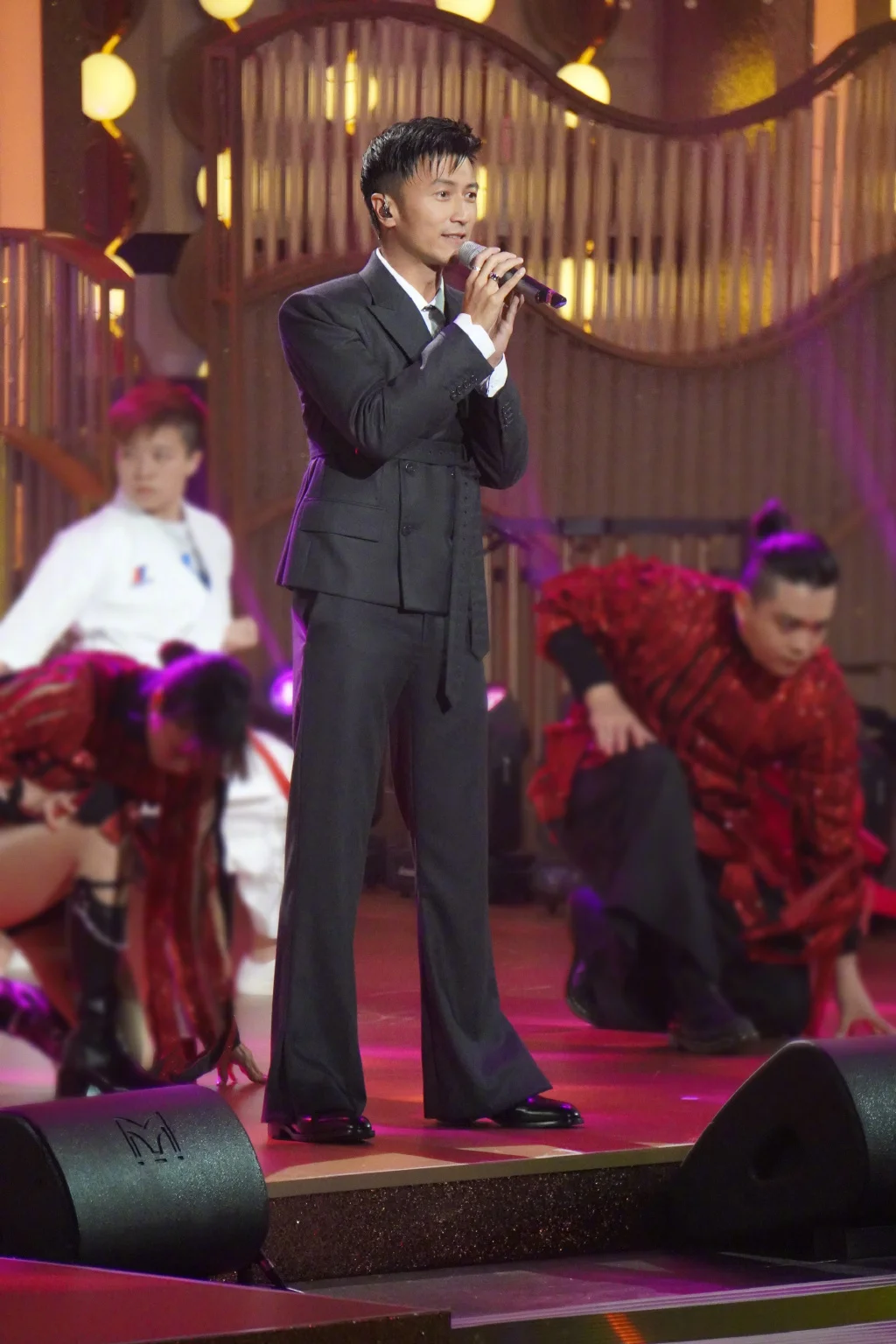 紧接着,谢霆锋和陈伟霆合唱《同根同心》《凝聚每分光》《香港我家》三首歌曲,两位男神同框十分养眼。